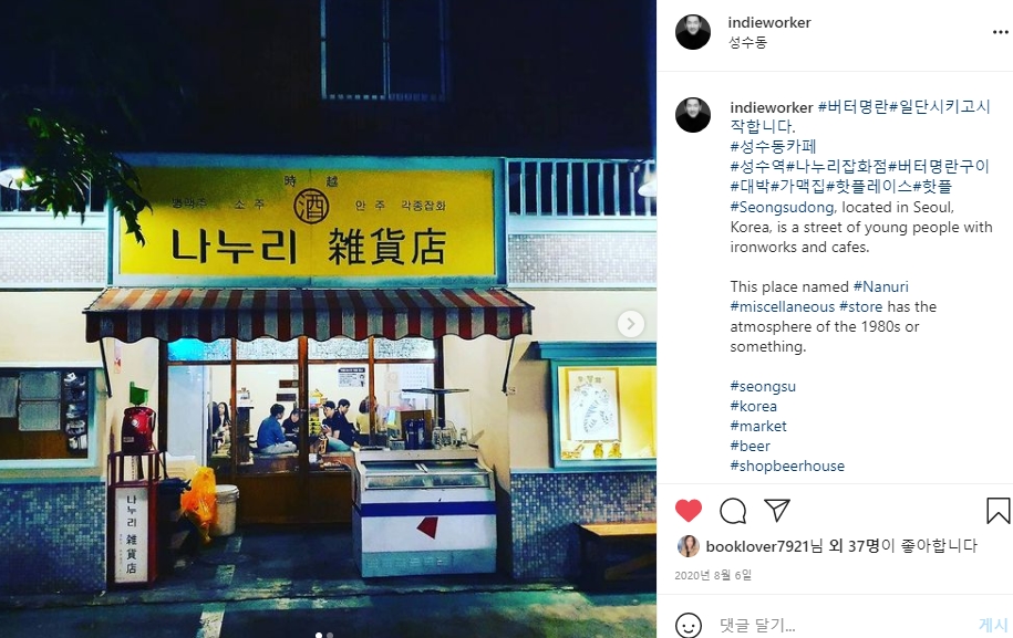 얼마 전 성수동 나누리 잡화점이라는 곳에서 가맥을 했다. 오래전 동네 가게를 그대로 재현한 듯한 비주얼에 술맛도 좋았던 곳이다. 창의적이다. 재미있다. 이런 생각을 하며 인스타그램에 포스팅까지 했다. 이 집의 '버터명란'이라는 안주는 특히 일품이었다.