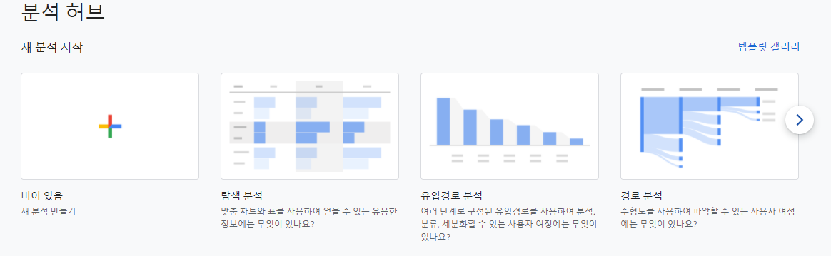 분석 허브를 클릭하면 몇가지 탬플릿이 뜨고 맨 우측에 '경로분석'이라는 탬플릿이 보입니다.