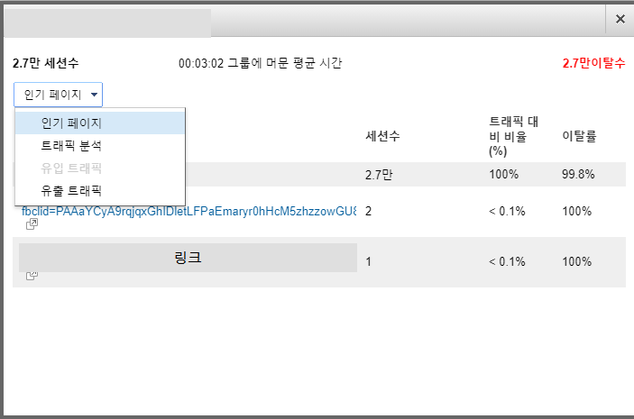 - 유입경로 이탈 지점: 유입경로에서 방문자가 이탈한 페이지