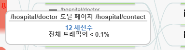 노드 이탈 지점에 위치한 빨간 색 위에 마우스를 가져가면 해당 노드에서 발생한 사용자 이탈에 대한 정보가 표시됩니다.